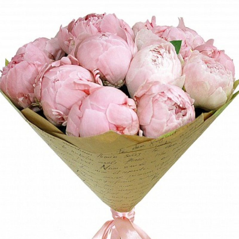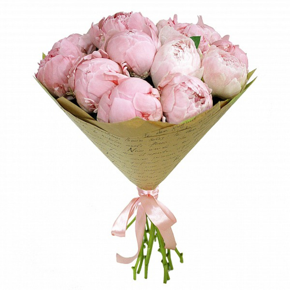 Букет состоит из 11 розовых пионов, крафт.
