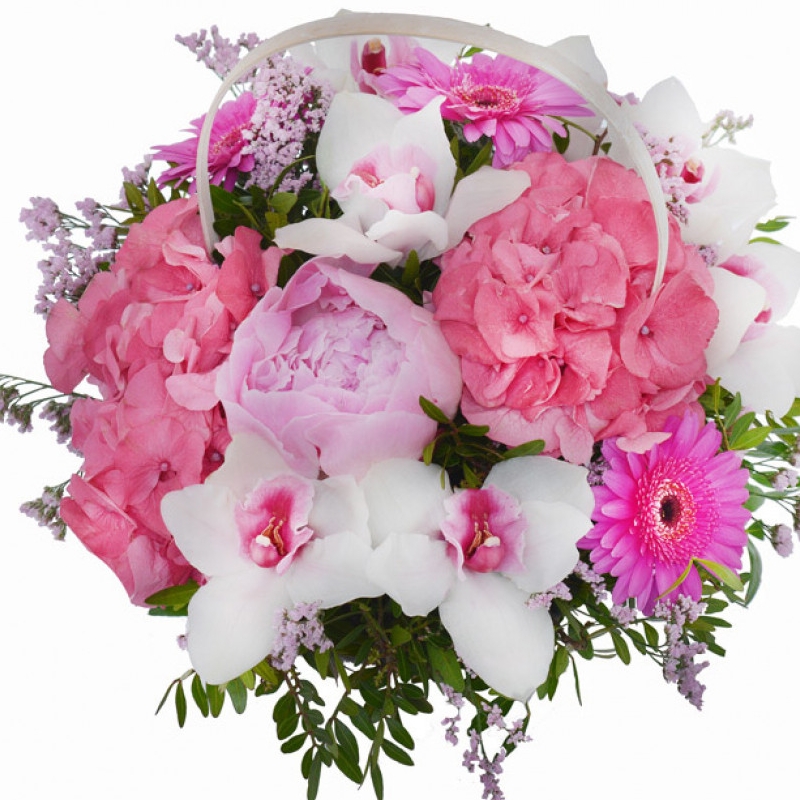 Гербера, Гортензия, Лимониум, Орхидея, Пион |