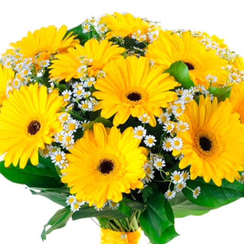 Гербера 13 шт., Танацетум 10 шт. |