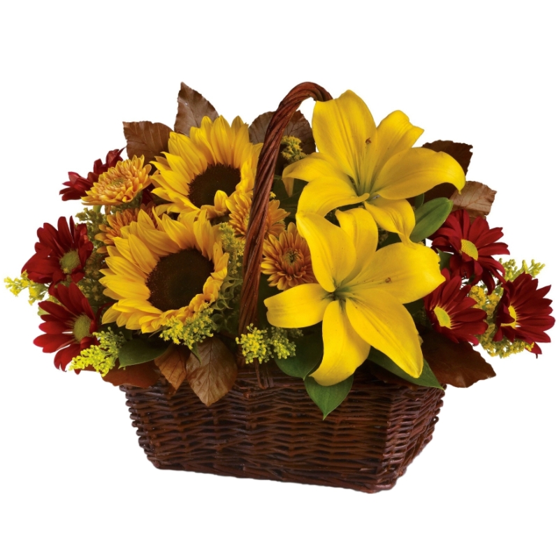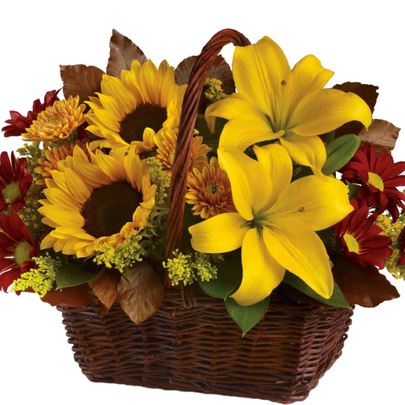 Лилия 2 шт., Подсолнух 2 шт., Хризантема кустовая 4 шт. |