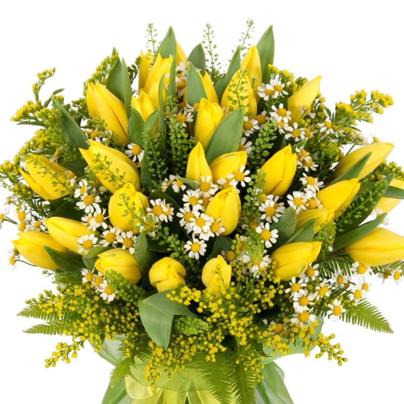 Мимоза 6 шт., Танацетум 4 шт., Тюльпан 31 шт. |