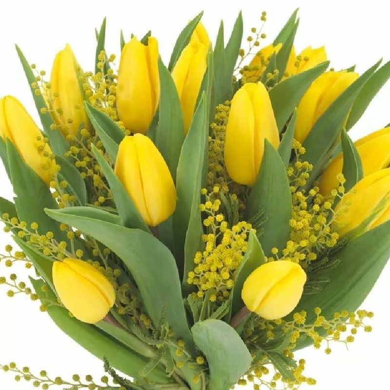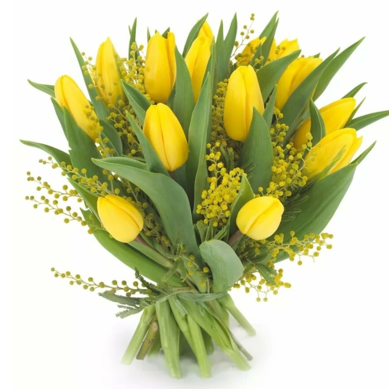 Мимоза 4 шт., Тюльпан 15 шт. |