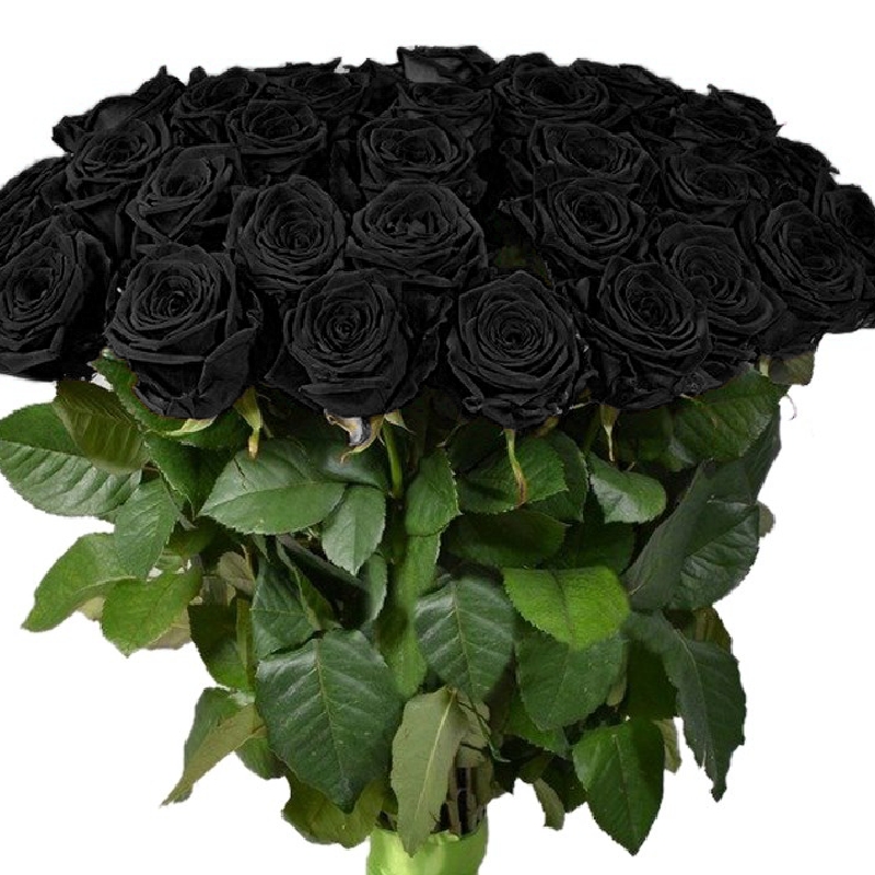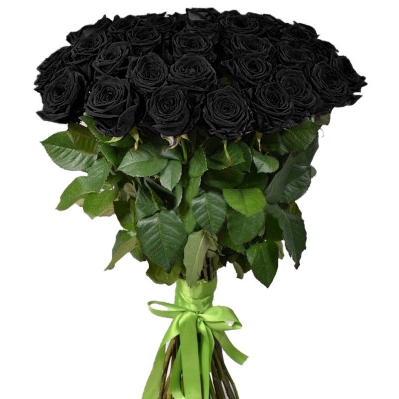 Букет состоит из 46 черных роз, прозрачная упаковка, черная лента.