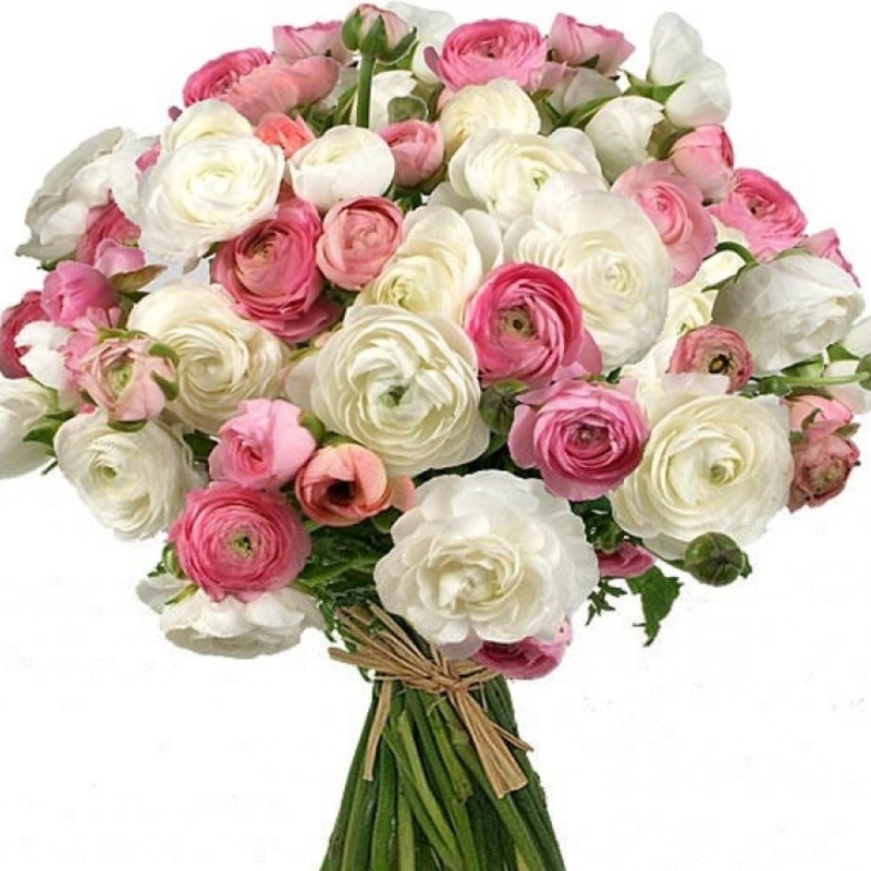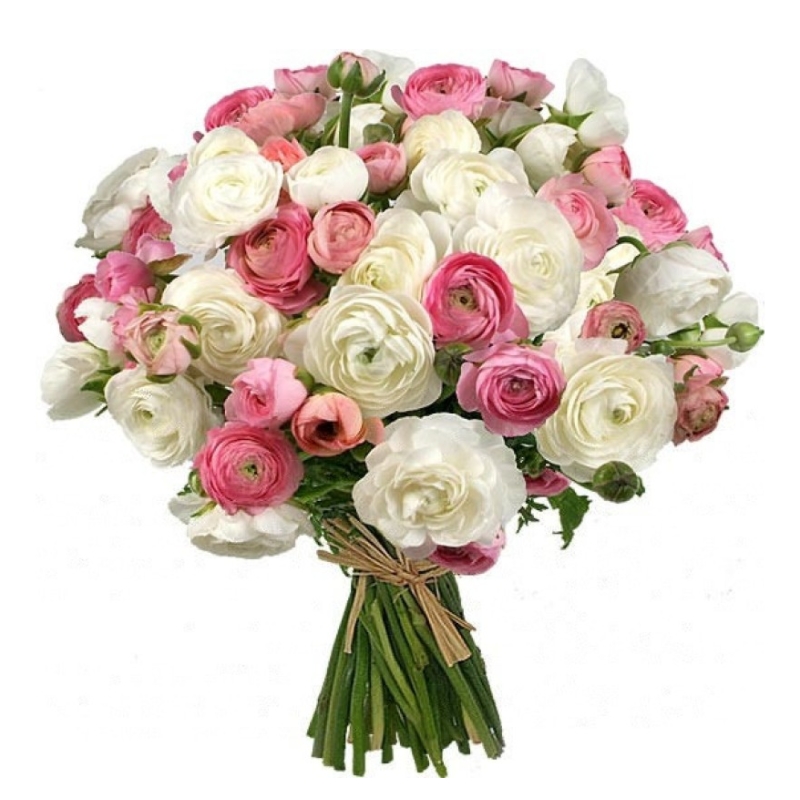 Букет состоит из MIX из 51 красного и белого ранункулюса, лента.