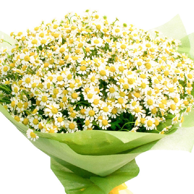 Букет состоит из 25 веток танацетума, красивая упаковка, атласная лента.