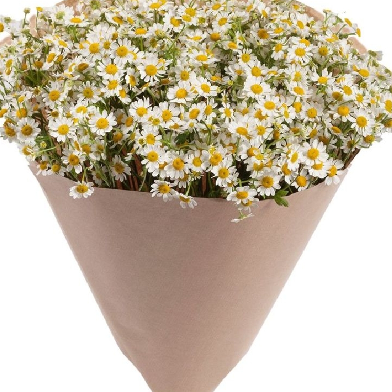 Букет состоит из 25 веток танацетума, крафт, атласная лента.
