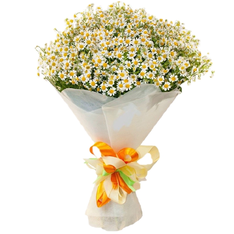 Букет состоит из 31 ветка танацетума, фетр, атласная лента.