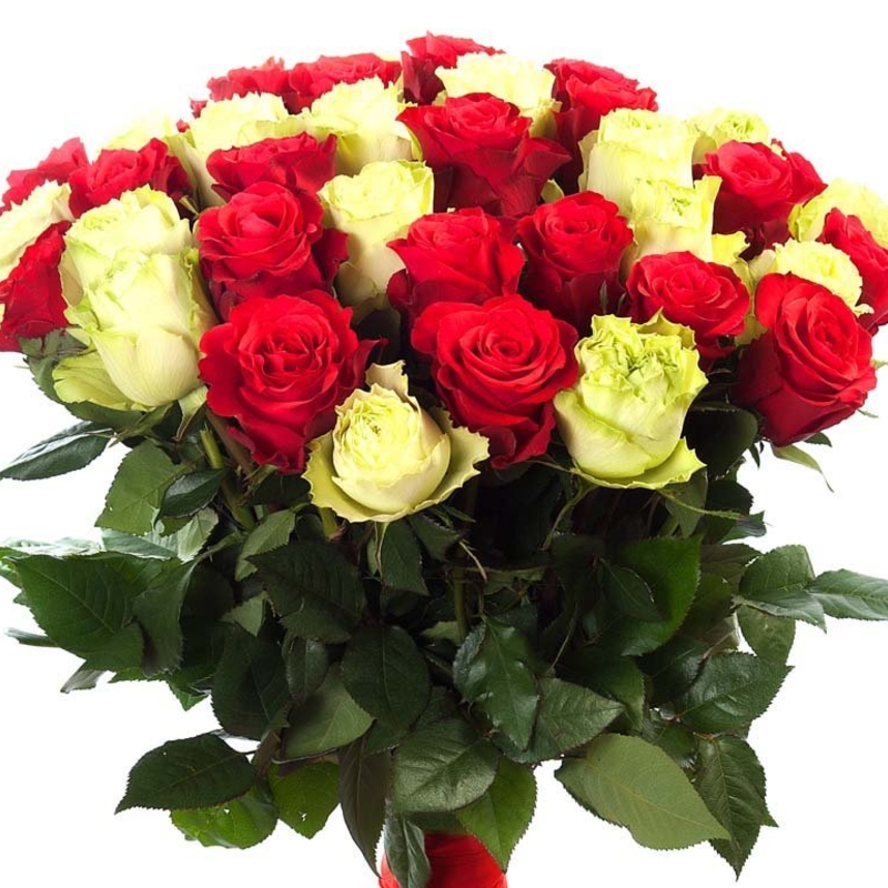 Букет из 45 белых и красных роз