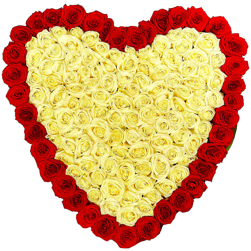 Сердце из 151 красной и белой розы