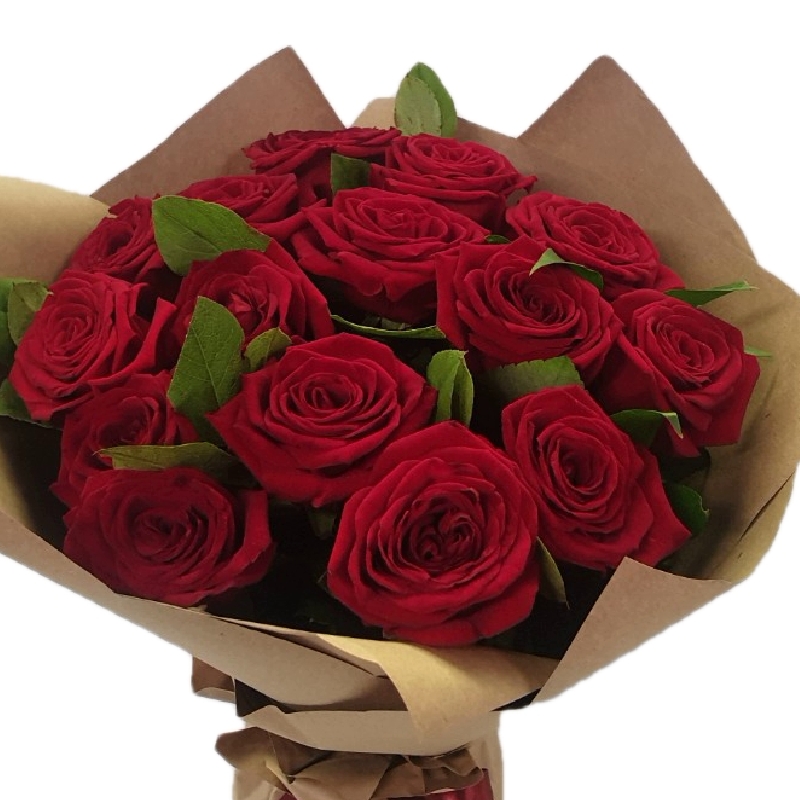 Букет из 17 бордовых роз в крафте