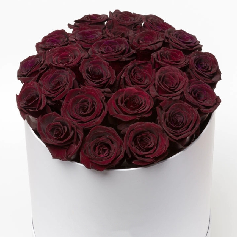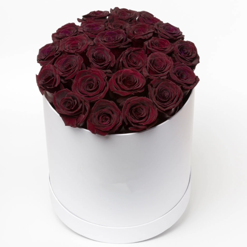 Букет состоит из 29 бордовых роз, коробка, оазис.