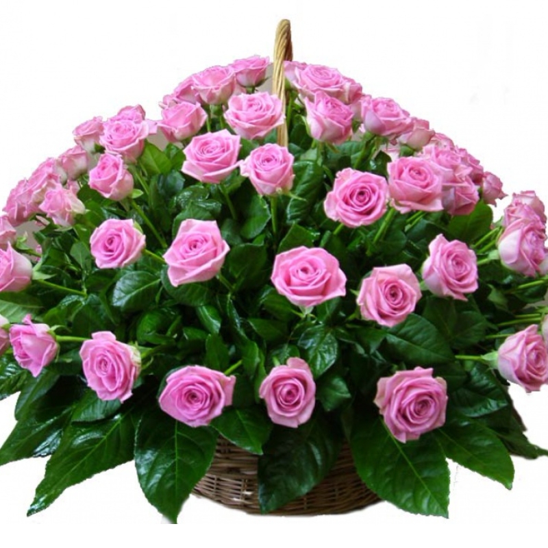 101 розовая роза, корзина.