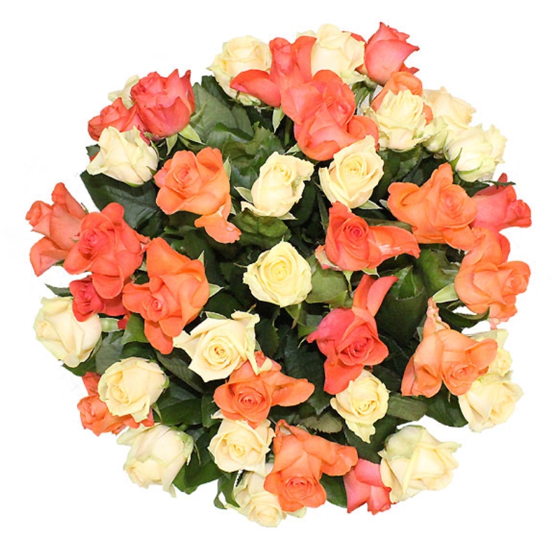 Букет из 51 кремовой и оранжевой розы