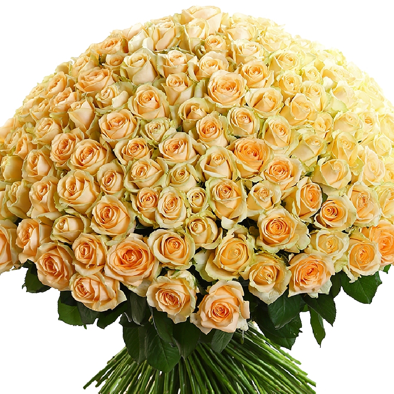 Букет состоит из 201 кремовая роза, прозрачная упаковка, атласная лента.