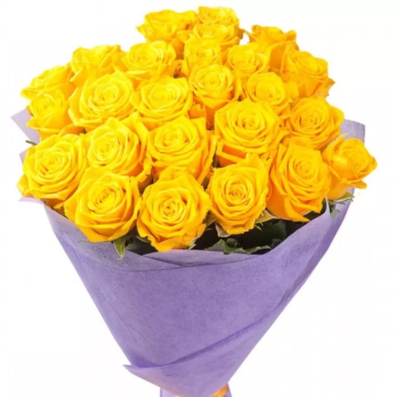 Букет состоит из 25 желтых роз, красивая упаковка, атласная лента.