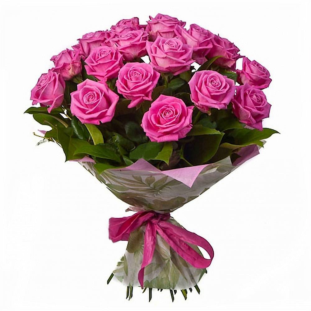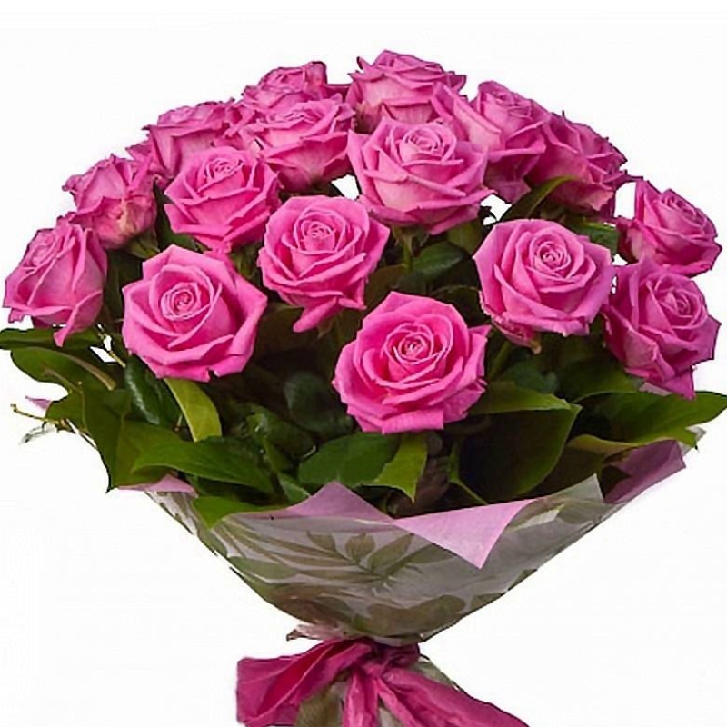Букет состоит из 19 малиновых роз, в красивой упаковке.