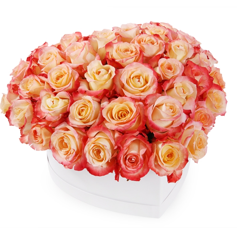 Сердце из 51 розы Кабаре в коробке