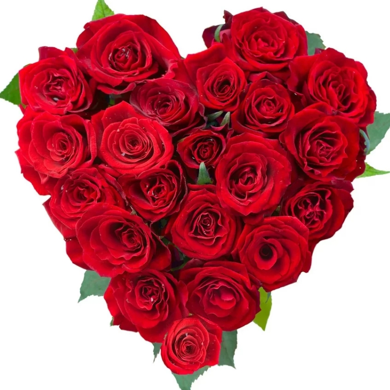 Сердце из 21 красной розы