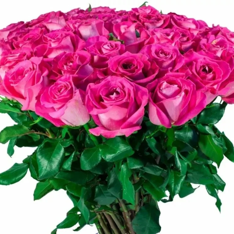 Букет состоит из 31 малиновая роза, прозрачная упаковка, атласная лента.