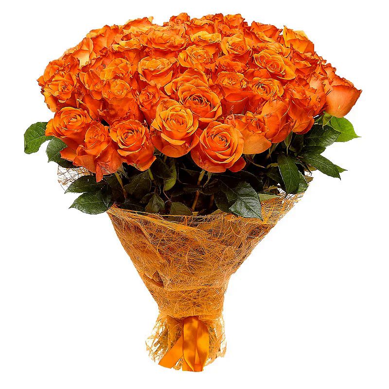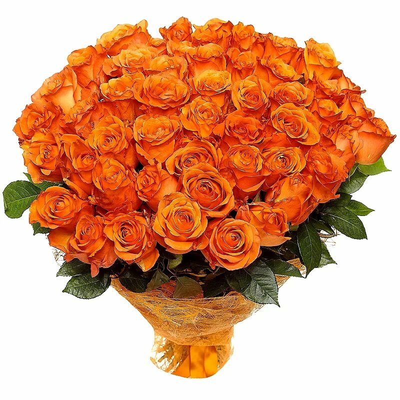 Букет состоит из 55 оранжевых роз, красивая упаковка, атласная лента.
