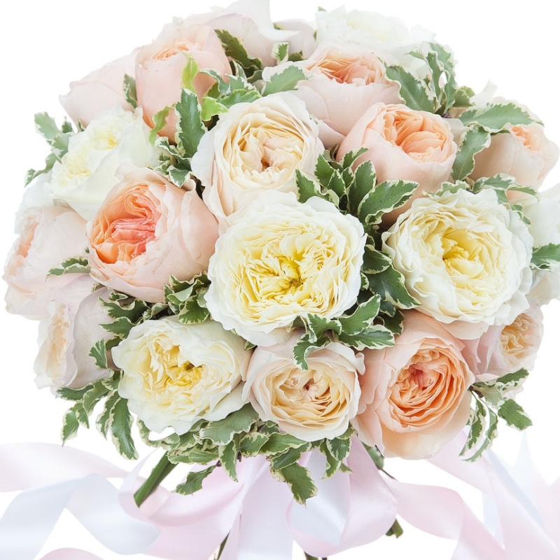 Букет состоит из MIX из 25 пионовидной розы, питтоспорум, прозрачная упаковка, атласная лента.