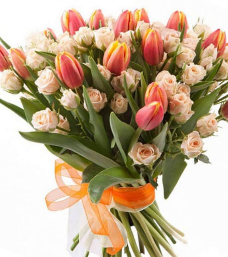 Букет из тюльпанов и кустовой розы "Весеннее настроение"