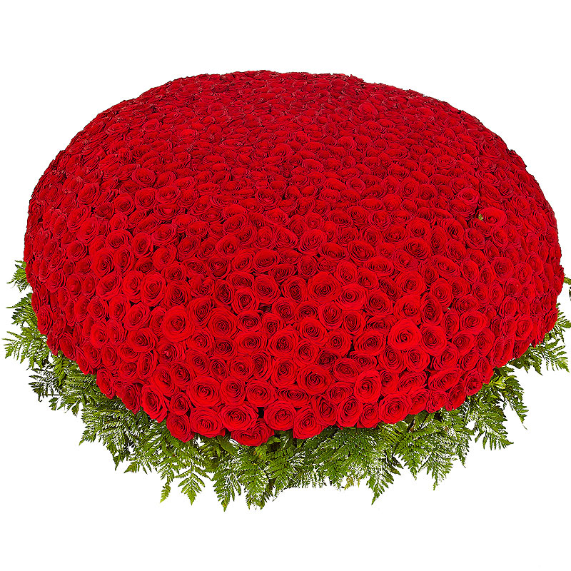 Букет состоит из 1001 красная роза, зелень, корзина.