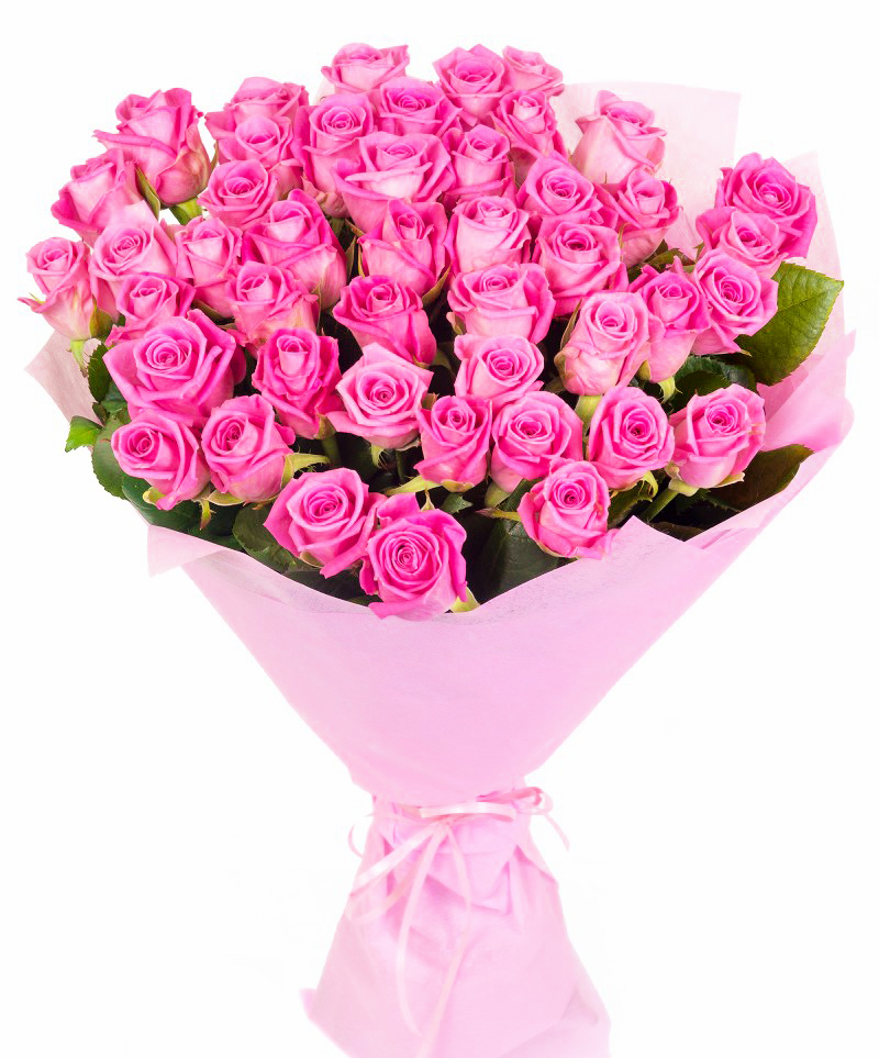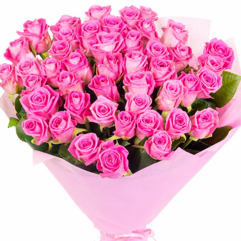 Букет состоит из 51 розовая роза, розовая упаковка, розовая лента.