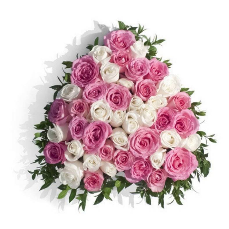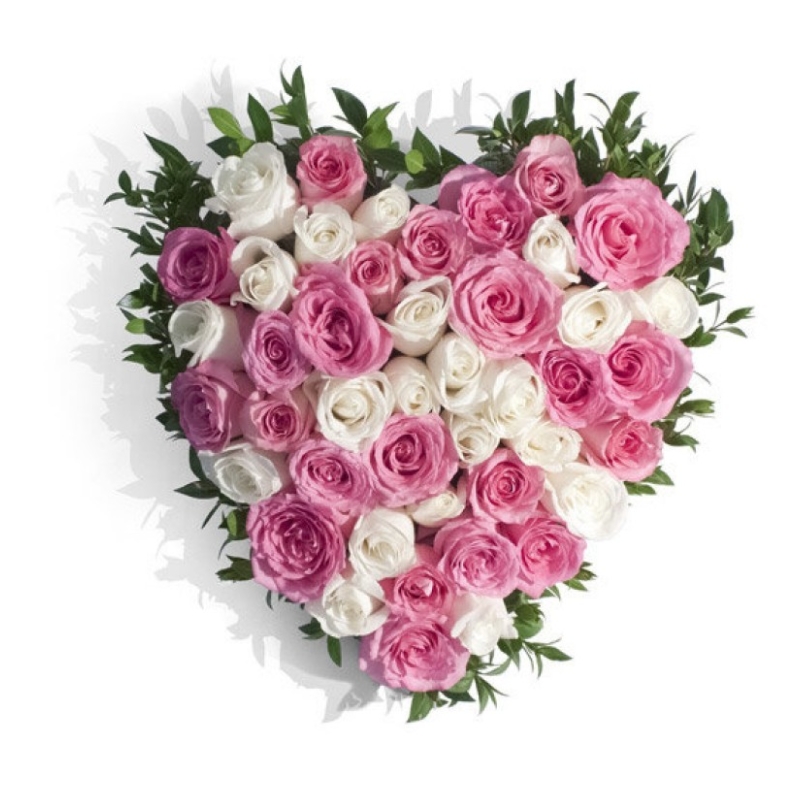 Композиция "Сердце" из белых и розовых роз 55 шт.