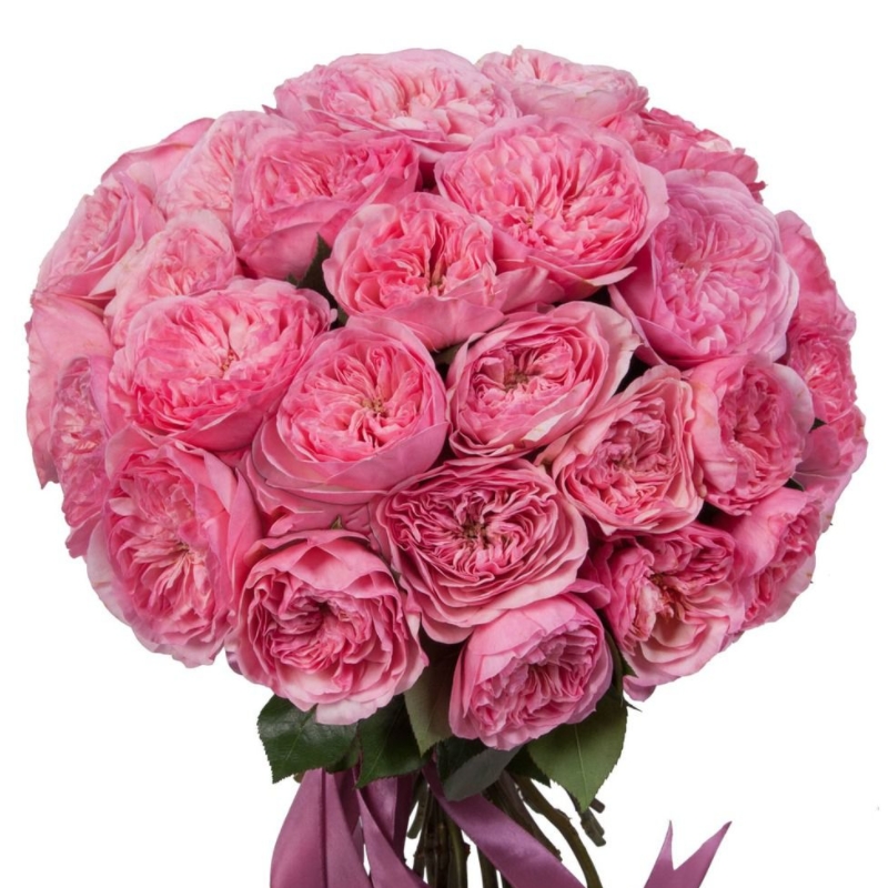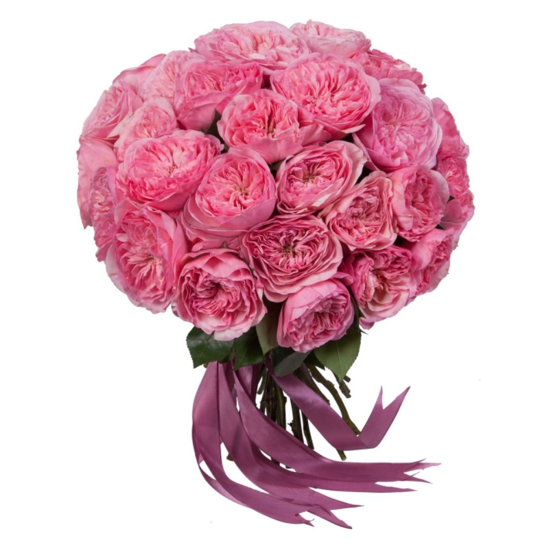 Букет состоит из 31 пионовидная роза, прозрачная упаковка, атласная лента.