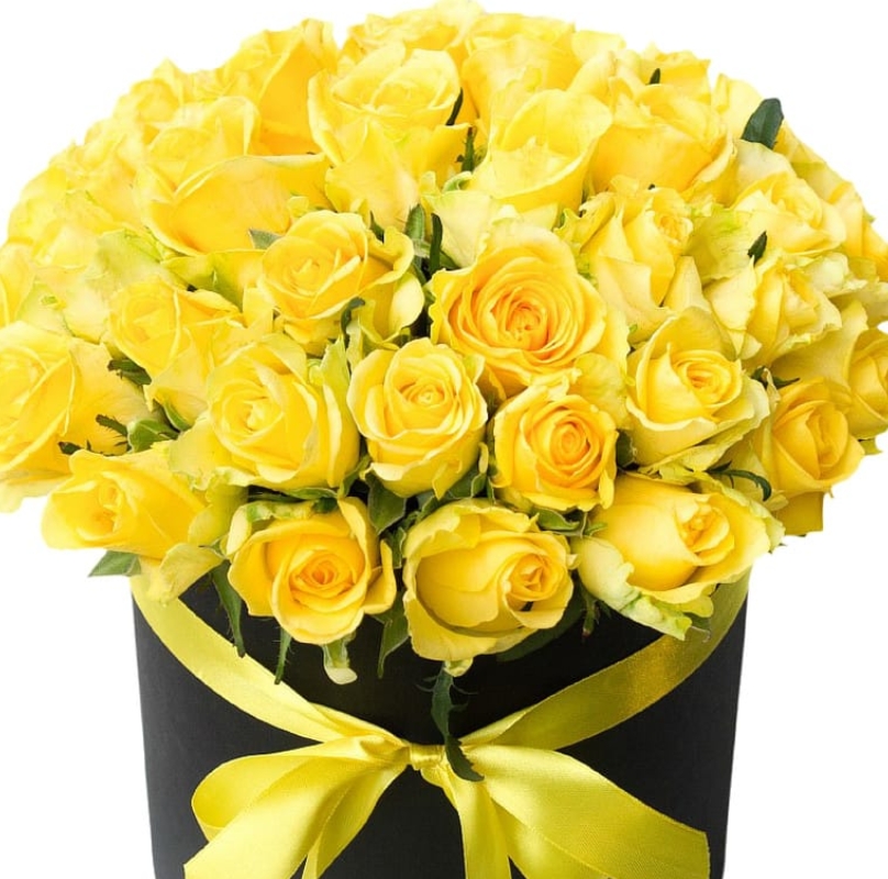 Букет состоит из 51 желтая роза, коробка.