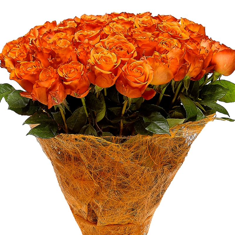 Букет состоит из 45 оранжевых роз, красивая упаковка, атласная лента.