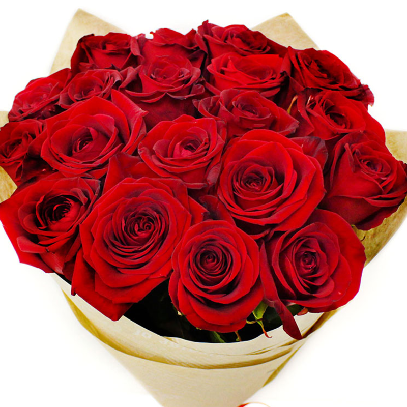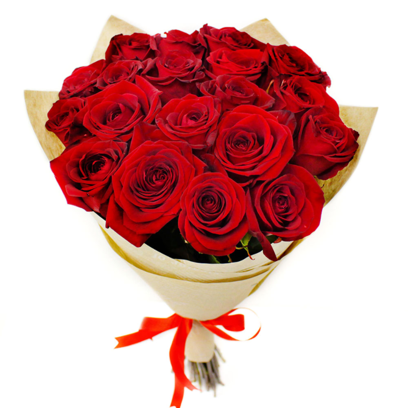 Букет из 21 красной розы в крафте