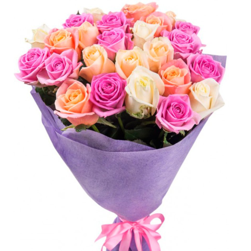 Букет состоит из MIX из 21 розы, красивая упаковка, атласная лента.