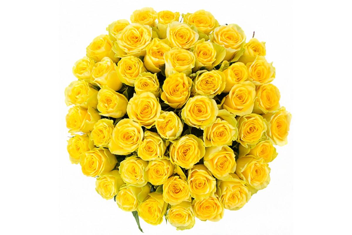 Букет состоит из 51 желтая роза, прозрачная упаковка, атласная лента.